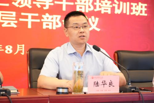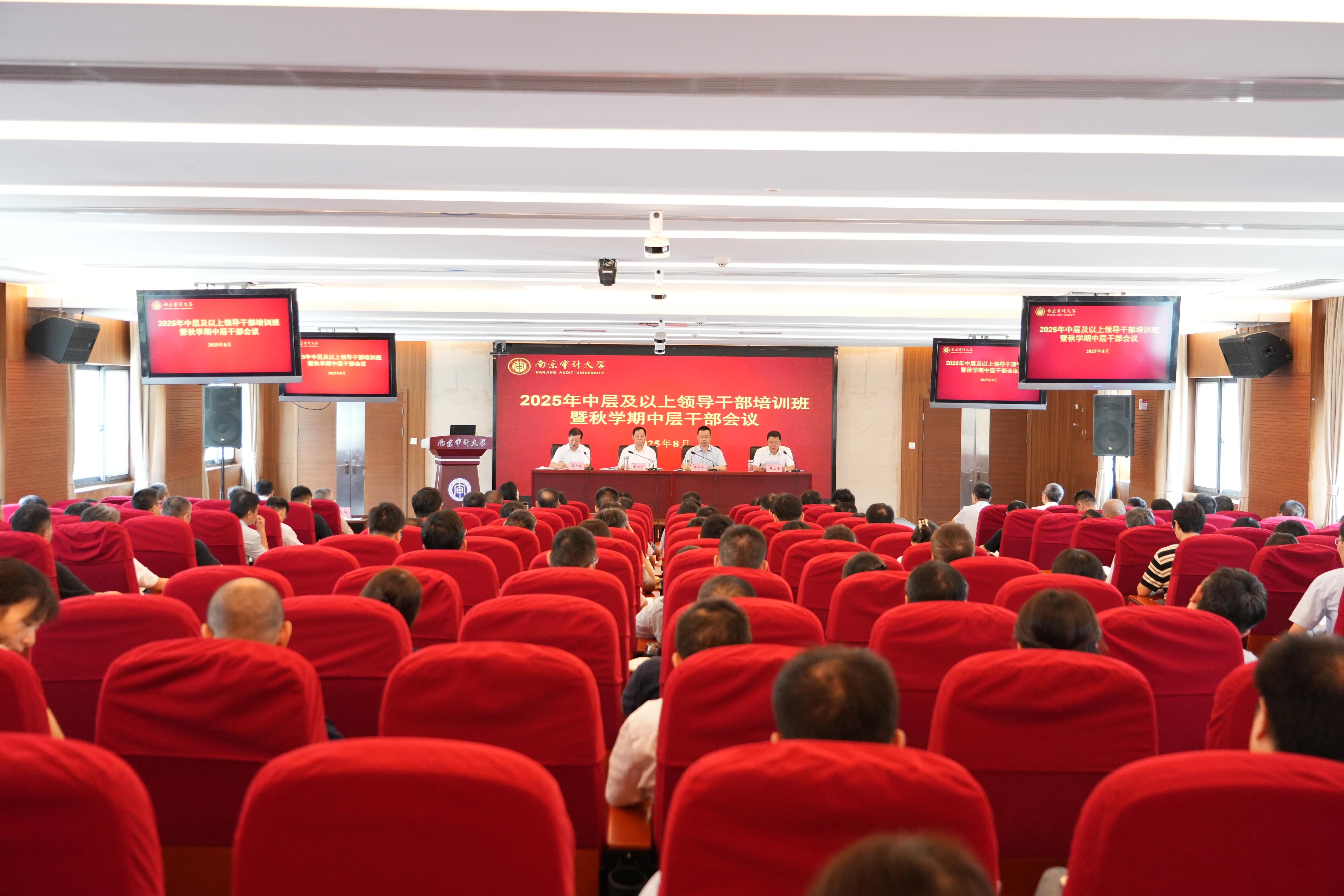 为提高领导干部履职尽责能力,深化新一轮校院二级管理改革,推动学校立足“十四五”攻坚收官、“十五五”谋篇布局之年,坚持以高质量党建引领推动事业高质量发展,根据学校党委统一部署,8月27-29日,学校在浦口校区举办2025年度中层及以上领导干部培训班。培训班以理论辅导、专题汇报、工作部署等相结合的形式进行。校党委书记董必荣作开班动员和总结讲话,党委副书记、校长陆华良部署秋学期各项工作,全体校领导、党委常委、中层干部参加学习。培训活动由校党委副书记陈中建主持。
