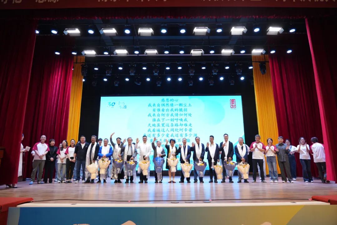 校友代表向教师代表敬献哈达并献花感谢师恩,大学生艺术团的在校生们和全体校友齐唱《感恩的心》,用歌声祝福同窗、祝福老师、祝福南审的明天更加璀璨辉煌。