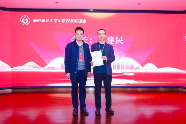 董必荣在讲话中回顾了南审依托审计特色、服务国家需求的发展历程与近年取得的成就,充分肯定了山东校友扎根齐鲁、在各领域取得的贡献,并对新成立的山东校友联谊会提出期望。董必荣表示,山东校友联谊会要建设有温度、有深度的“校友之家”,弘扬齐鲁文化与南审精神;要围绕山东发展大局,深化产学研合作,为地方发展注入“南审动能”;要促进人才培养与反哺循环,吸引齐鲁学子,助力校友成长,共同构建母校与校友的“荣誉共同体”和“发展共同体”。