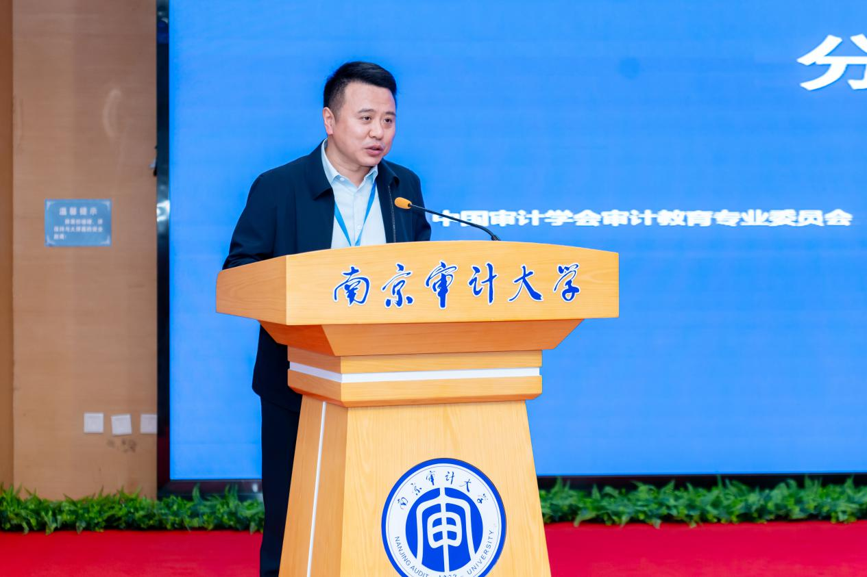 贵州财经大学党委常委、副校长杜剑以“地方高校审计教育高质量发展的思考”为主题,以贵州财经大学为例介绍了学校会计学院在学科建设、人才培养、党建引领等方面的显著成果,指出了学校仍面临学科建设短板、人才引育困难和技术冲击等方面的挑战,并围绕审计教育高质量发展提出了针对性的思考与建议。