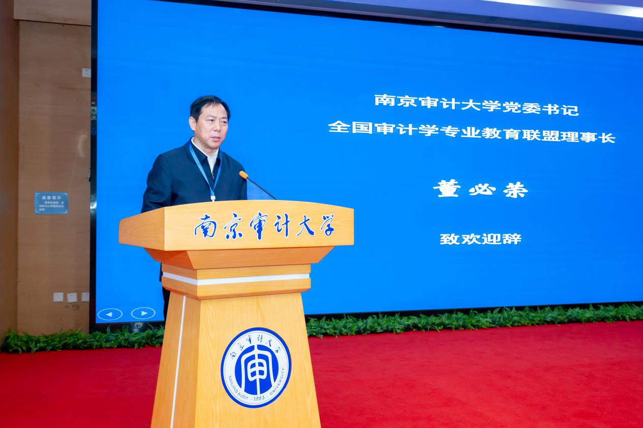11月15日上午,全国审计学专业教育联盟第一届第三次会议开幕式在南京审计大学举行,南京审计大学党委书记董必荣致欢迎辞。他指出,当前文科迎来历史最佳机遇期,构建中国自主知识体系是响应党中央战略部署的关键任务。他介绍了南京审计大学在建构中国审计学自主知识体系、推进原创性教材建设和讲好中国审计故事方面的探索与实践。他号召联盟成员在体系构建、师资赋能和产教融合三方面协同发力,共建共享,推动中国审计教育高质量发展。南京审计大学党委常委、副校长陈冬华主持会议。